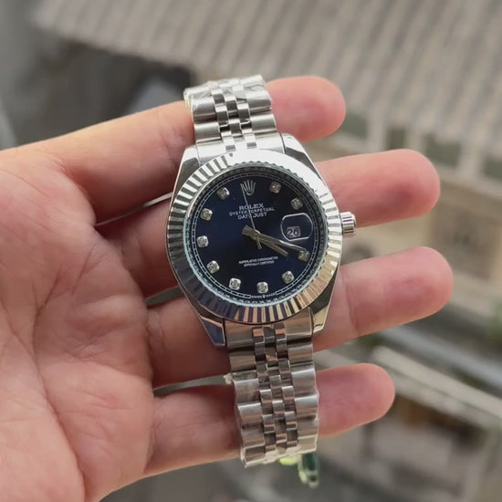 Role_x Datejust Silver Blue Diamond Dial Watch