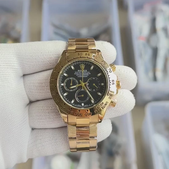 Role_x Daytona Black Dial Gold Chronograph Watch