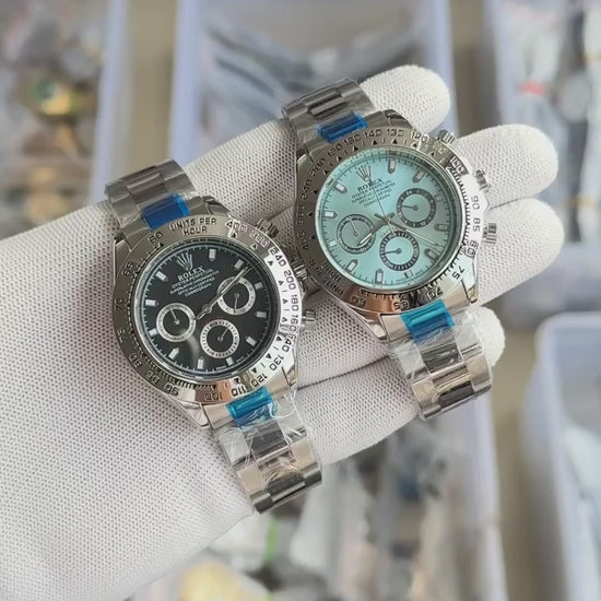 Role_x Daytona Black Dial Silver Chronograph Watch