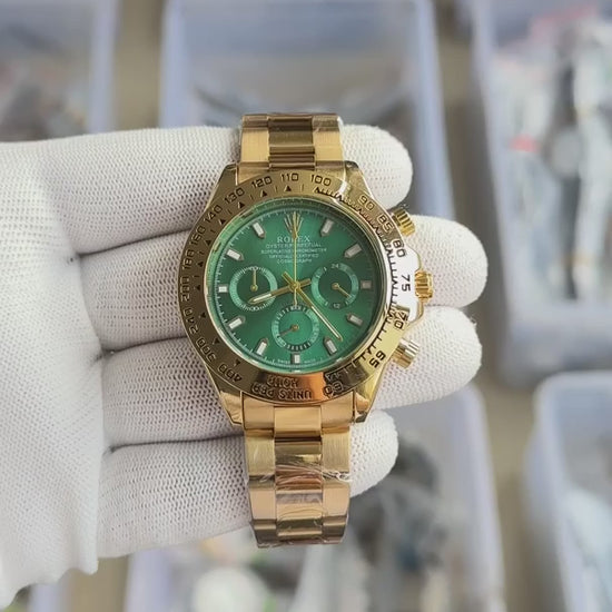 Role_x Daytona Green Dial Gold Chronograph Watch