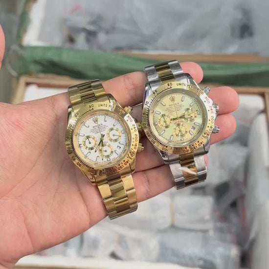Role_x Daytona White Dial Gold Chronograph Watch