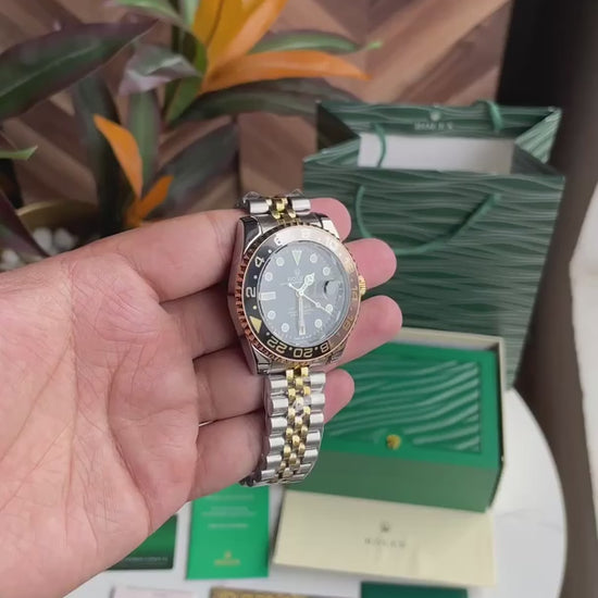 Role_x GMT-Master II Black Dial Two-Tone Gold & Silver Watch